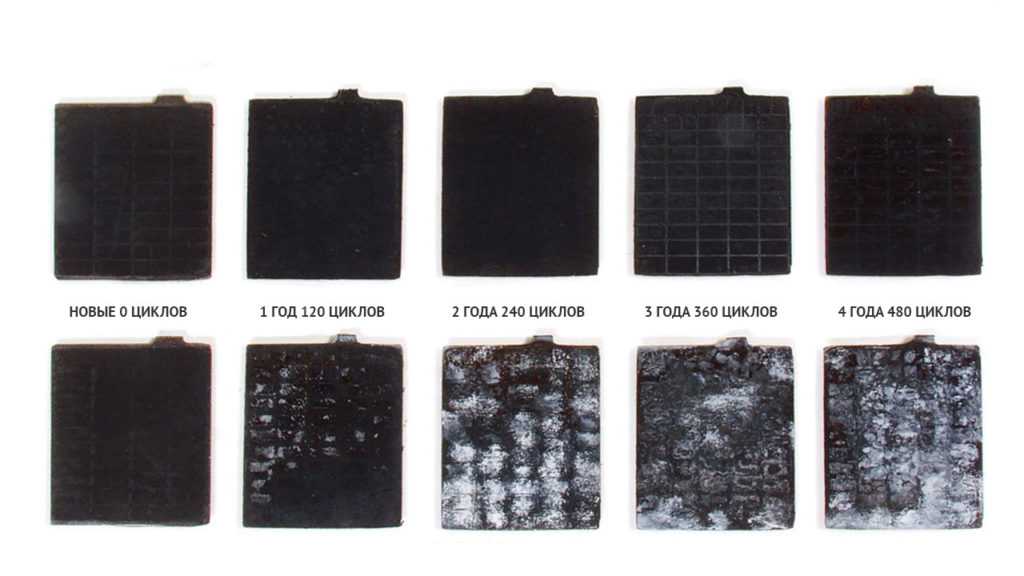Сами пластины состоят из металлической сетки, выступающей в качестве несущего каркаса для запрессованного в нее пористого активного материала.