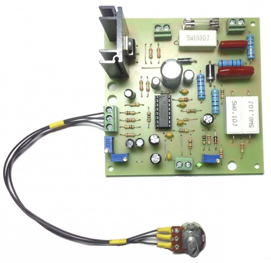 Обороты электродвигателя будут регулироваться за счет потенциометра, который определяет фазу входного импульса, открывающего симистор.