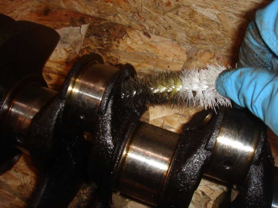 Коленвал был промерян микрометром и установлен на призмы: износ минимальный, биение отсутствует.Приступаем к выкручиванию заглушек масляных каналов и обязательно всё тщательно промываем, вне зависимости от условий эксплуатации и продуваем компрессором.