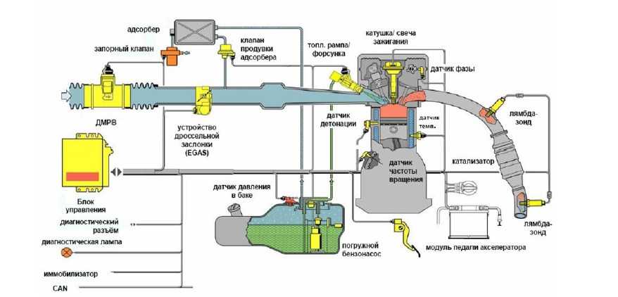 В инжекторном движке все происходит по другому. Любое лёгкое нажатие на акселератор контролирует микропроцессор. Происходит моментальная коррекция необходимого количества топлива, которое впрыскивается непосредственно в камеру сгорания. Четкая коррекция распределённого впрыска, улучшает динамику и приемистость автомобиля, снижает расход горючего и уменьшает количество вредных веществ в выхлопных газах.