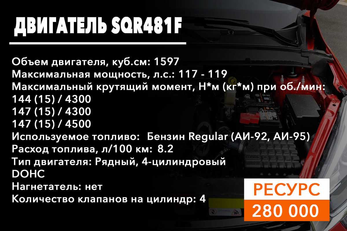 SQR484F – бензиновый 16 клапанный мотор с двумя распредвалами и ременным приводом. Устанавливался на Tiggo 3 (4, 5, 5FL, 7). При обрыве ремня гнет клапана.
