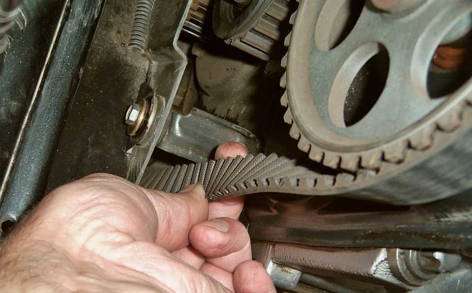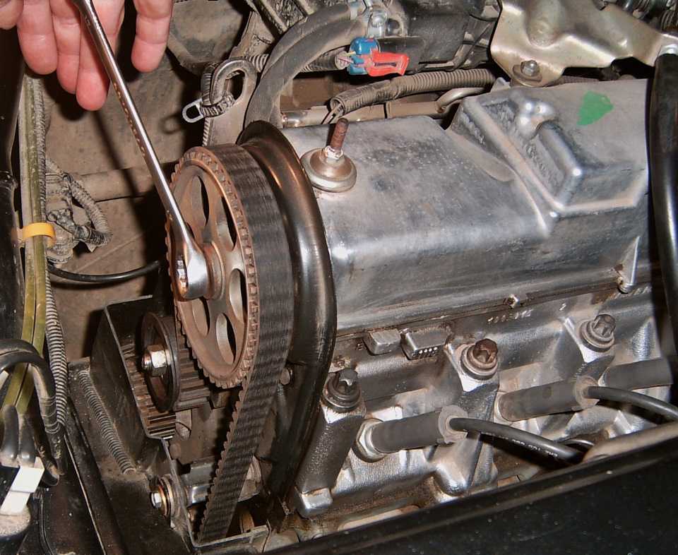 1. Проверьте натяжение ремня. Правильно натянутый ремень должен поворачиваться на 90° от усилия пальцев (1,5–2 кгс) посередине между шкивами коленчатого и распределительного валов.