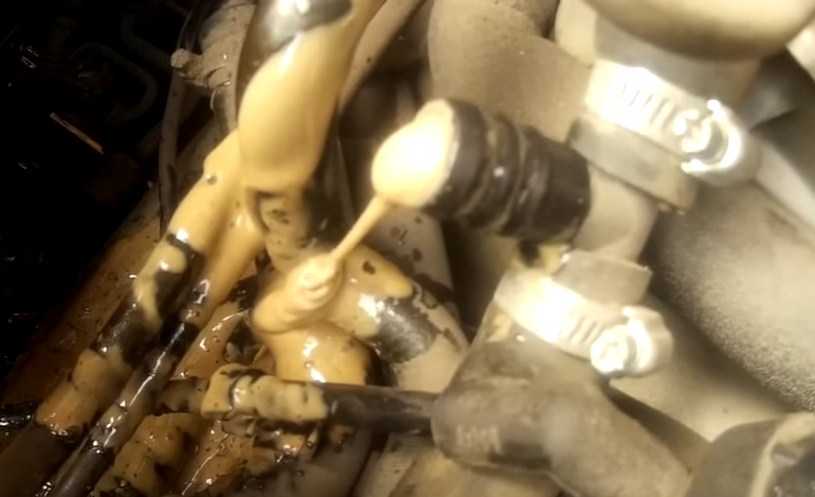 Отчаявшись отмыть двигатель от эмульсии, я рискнул промыть систему охлаждения дизельным топливом.