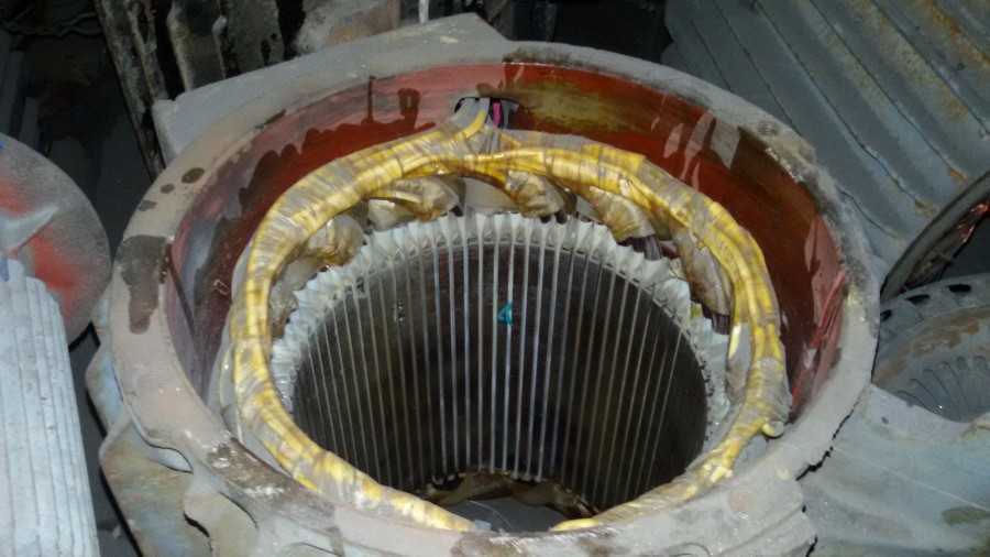 Откиньте крышки, чтобы определить, понадобится ли доставать ротор из корпуса, или все ремонтные работы можно сделать на месте. Когда мощность двигателя меньше 17 квт, ротор просто вытаскивают и отводят в сторону, а если выше, то ремонт делают на месте.