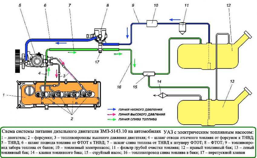 Система питания дизельного двигателя состоит из следующих базовых элементов: