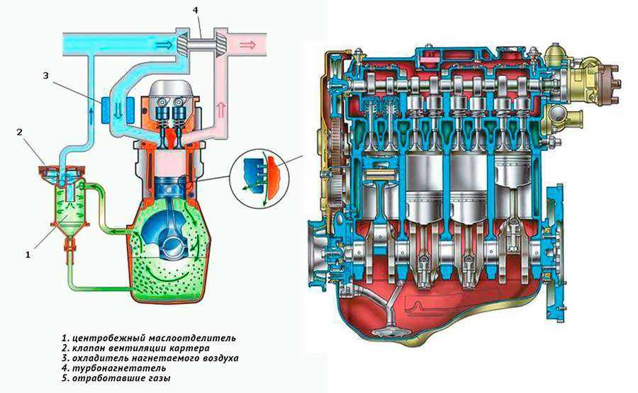 Чтобы снизить негативное влияние картерных газов, их принудительно выкачивают из картера. За это как раз и отвечает система вентиляции картера.