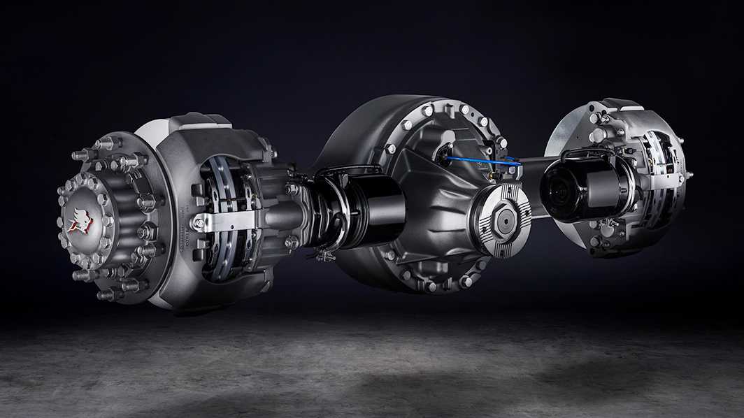 – одноступенчатая коническая или гипоидная главная передача, соединенная с планетарной передачей, расположенной в ступицах колес. Такая конструкция отличается рядом преимуществ: малые размеры конической или гипоидной передачи; планетарная передача размещена вне тормозов; соосное положение шестерен, передающих крутящий момент; разделение передаваемого момента между тремя или пятью сателлитами; высокий КПД и др.