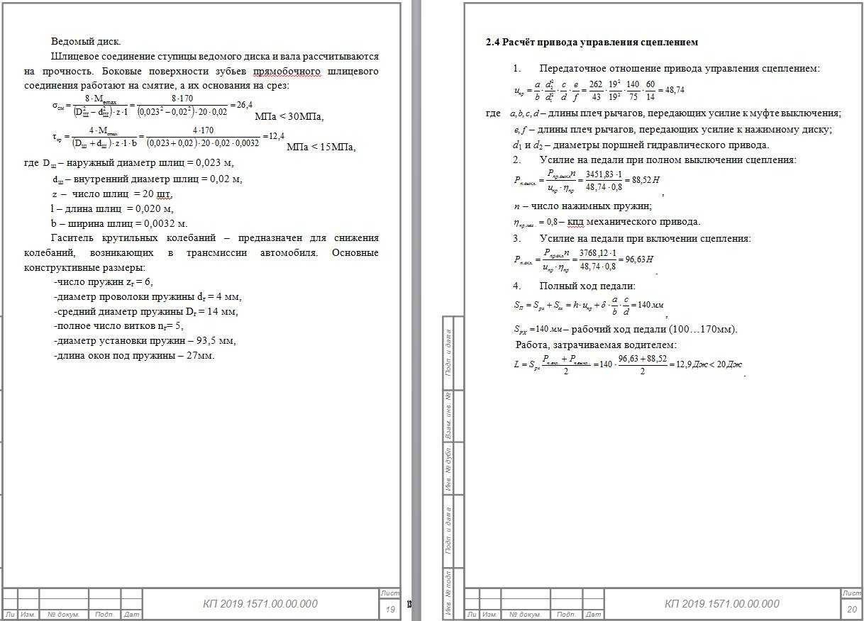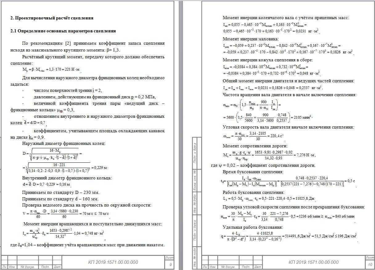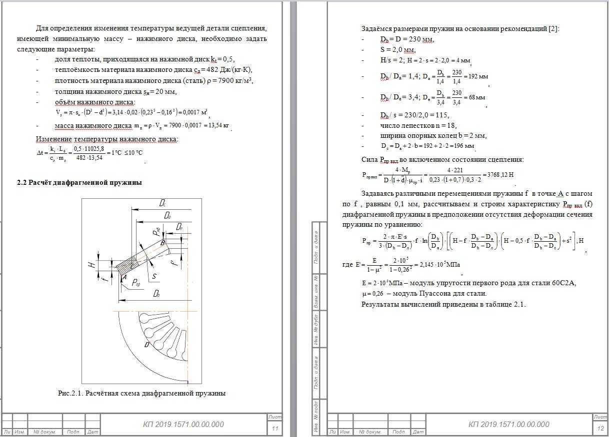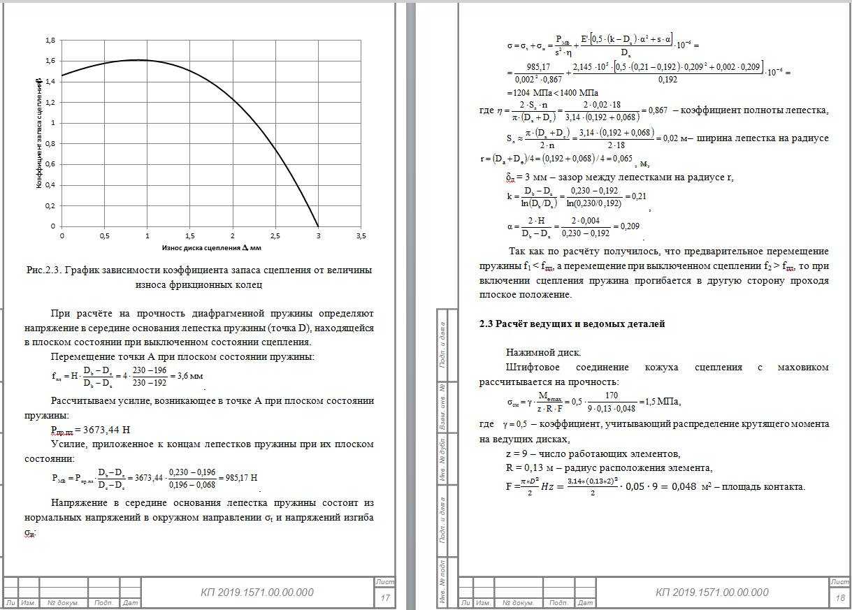 В данном курсовом проекте разработано сцепление для автомобиля LADA Vesta 1.8. В ходе выполнения курсового проекта произведены расчеты основных параметров сцепления, расчет диафрагменной пружины, ведущих и ведомых деталей, привода управления сцеплением. Выбраны параметры гасителя крутильных колебаний.