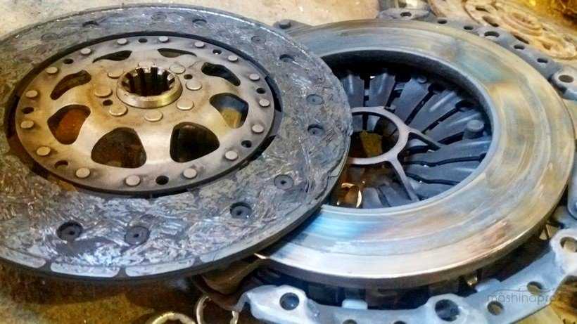 стираясь о маховик и прижимной диск. Так узел сгорает и необратимо портится.