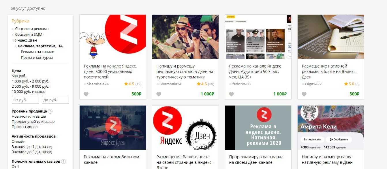 Подобные предложения можно найти на биржах фриланса. Особенно много их на https://kwork.ru/. Блогеры подают объявления о своих услугах. Средняя цена – 1000 рублей.
