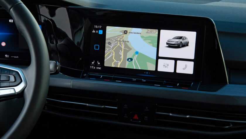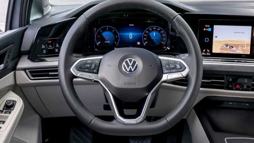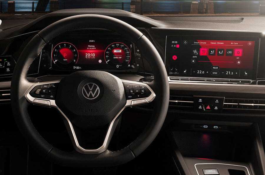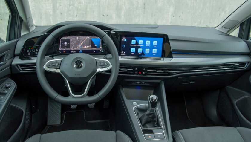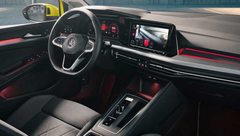 Салон Фольксваген Гольф 2021 года преобразился исключительно за счет новых дисплеев. Теперь это 10,25-дюймовая цифровая приборная панель и 8,25-дюймовый экран информационно-развлекательной системы, который может увеличиться до 10 дюймов в диаметре за доплату.