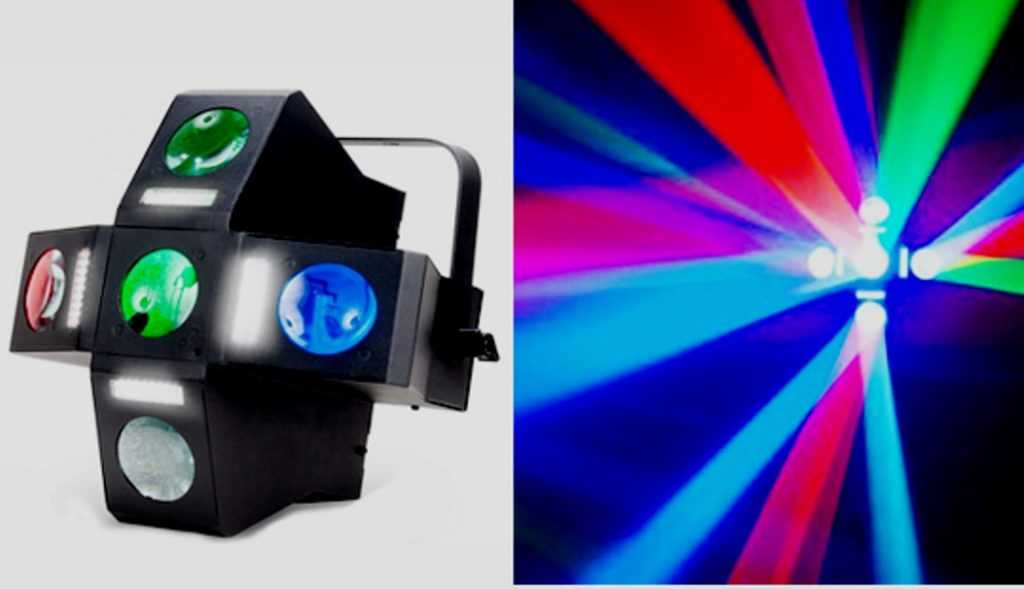 Оборудование пользуется повышенным спросом среди организаторов вечеринок и незабываемых шоу. Сочетает в себе два мощнейших приспособления: DMX LED Moonflower + стробоскоп на 5 линз и стробоскопические ленты в количества 4 штук. Часто используется в небольших питейных заведениях. В состоянии создать большое количество эффектов. Потребляет мощности в 50 Вт. Максимальный рабочий ресурс – 50000 часов. Луч раскрывается на 60 градусов. Задняя панель оснащена четырехкнопочным жидкокристаллическим дисплеем. Имеются разъемы для гирляндного подключения. Собственный вес – 4,7 кг при габаритах 338*241*338 см. Можно подвесить под потолок или закрепить на стене.