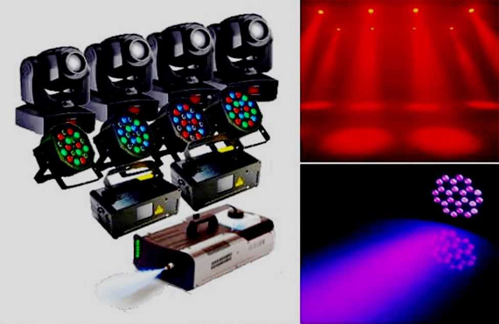 Комплект относится к категории универсальных. Источником света служит RGBW + LEDS + Laser. Диммер – 0 – 100 процентов. Параметры – 40*40*22 см. Вес – 12 кг. Мощность лазера – 400 мВт. Присутствует вращающаяся голова и дым машина. Движение происходит под углом 360 градусов. Функционирует в автоматическом режиме. Производителем предусмотрено встроенное активное охлаждение. Набор состоит из: