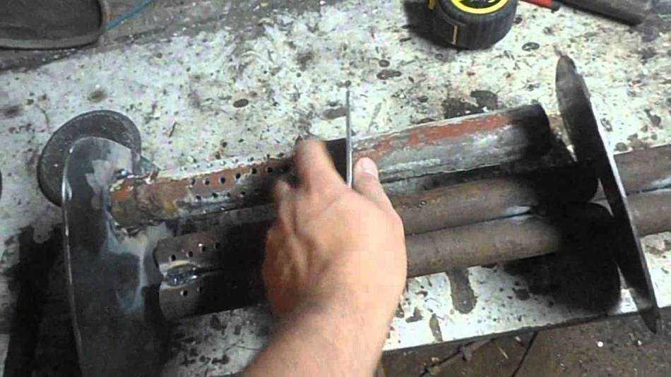 - На участках труб, которые войдут внутрь корпуса, сделайте перфорацию в шахматном порядке.