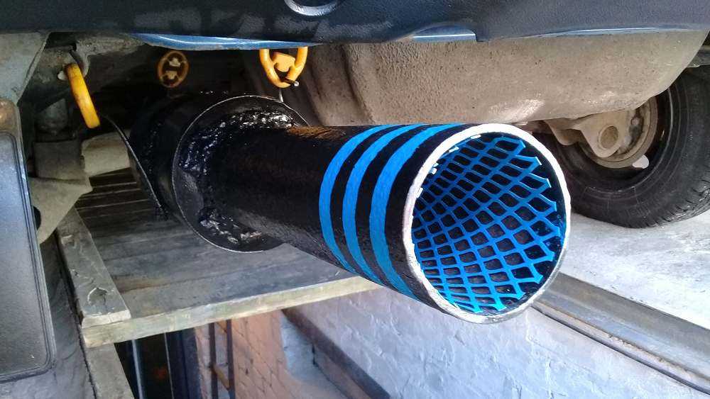 Напоминаем, что метод временный и позволит продержаться немного до настоящего ремонта. Его можно применить и в том случае, когда пробит глушитель, но только если отверстие небольшое.