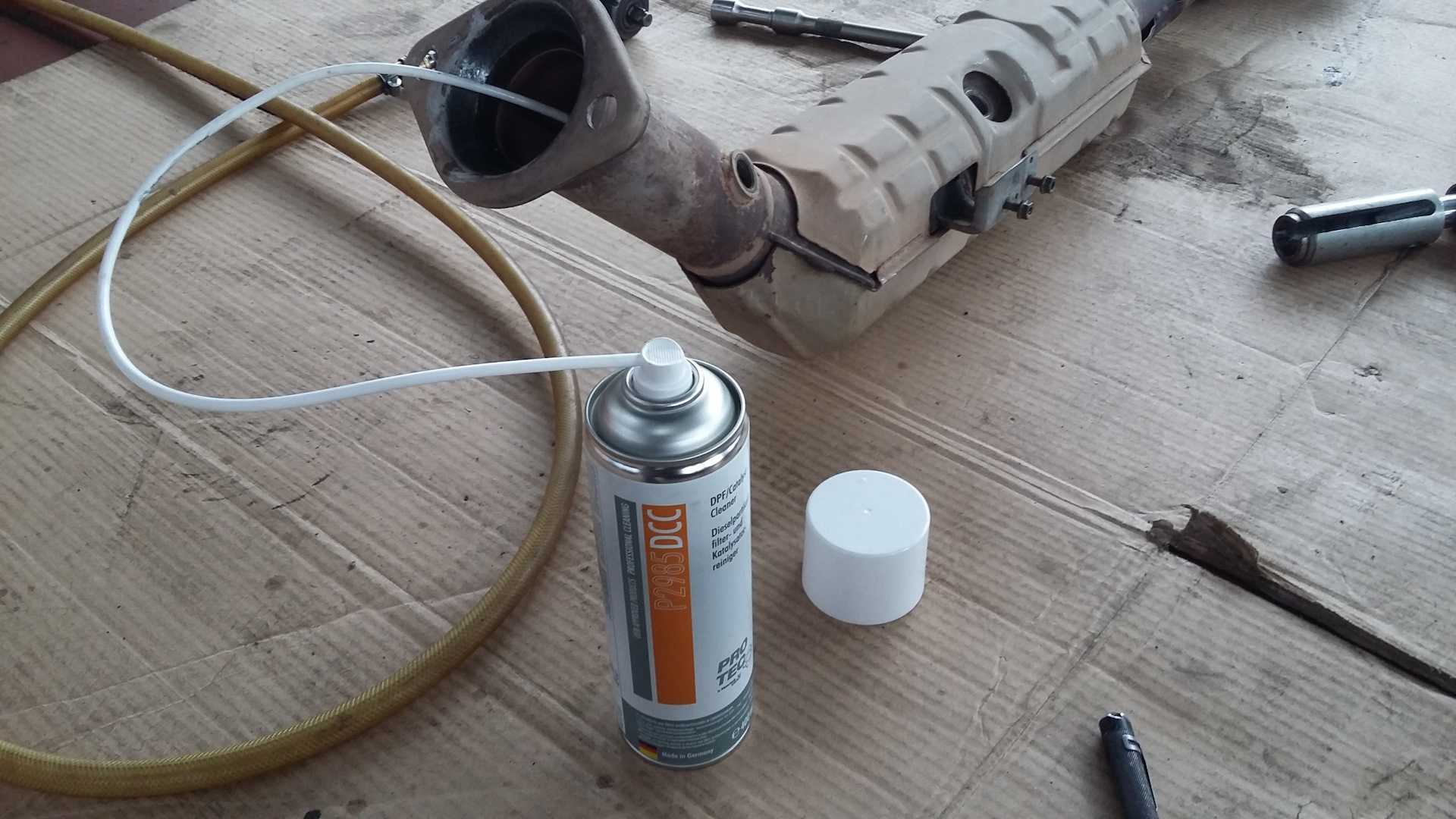Для такой очистки используются специальные жидкости типа Hi-Gear HG3270, которые заливаются в топливный бак. Сажа будет самостоятельно выводиться из фильтра вместе с выхлопом.