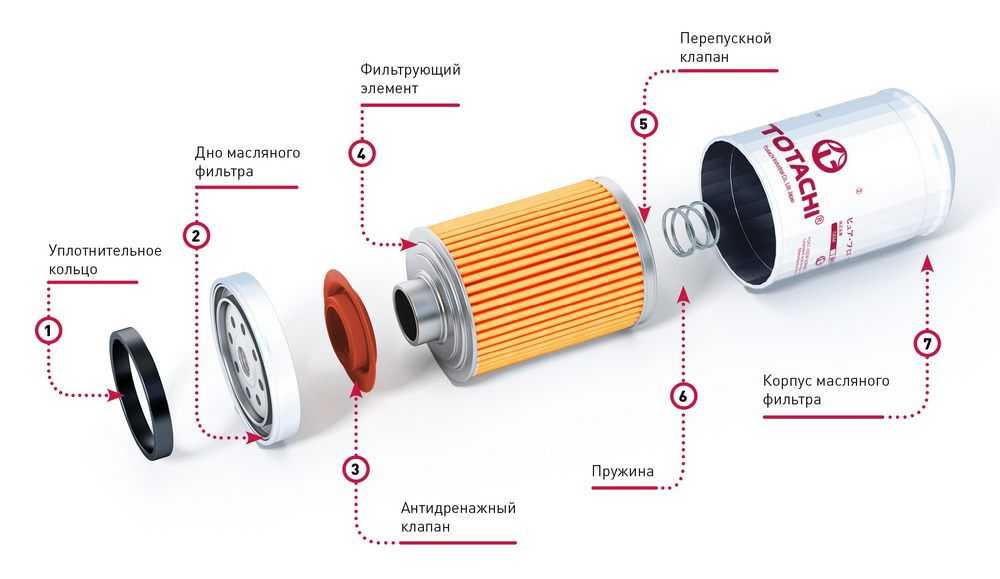 Масляный адсорбционный фильтр двигателя независимо от типа корпуса состоит из следующих деталей: