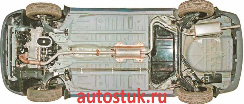 Выхлопная система состоит из нескольких секций, соединенных между собой крепежными болтами.