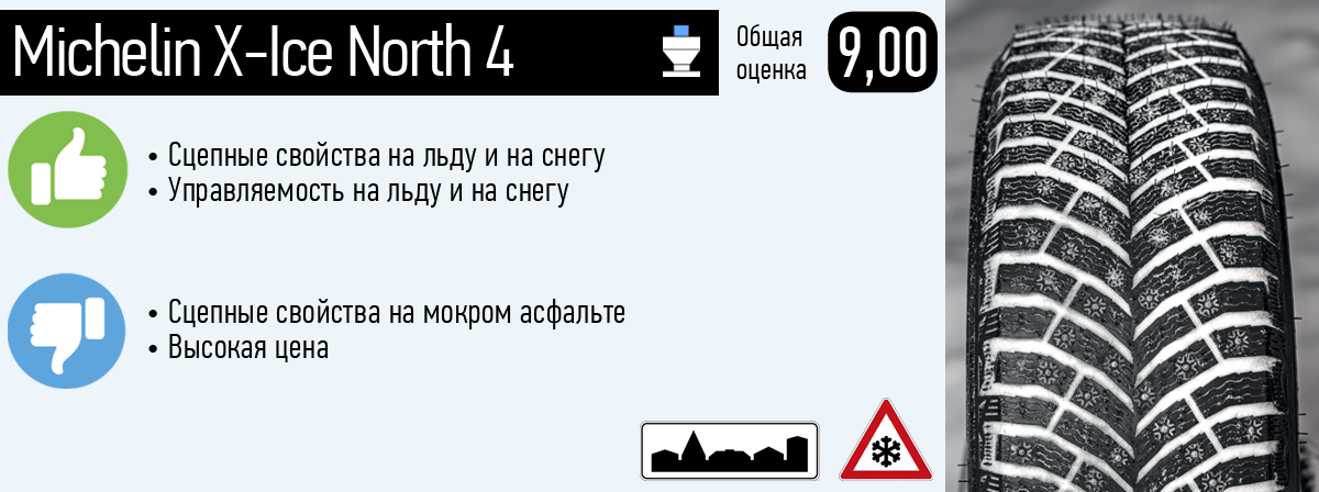 «Мелких, но побольше!» — именно такой выбор числа шипов сделали в компании Michelin. И не прогадали: шины X-Ice North 4, произведенные на российском заводе в подмосковном Давыдово, обладают превосходными сцепными свойствами на льду. Да и на снегу направленный рисунок работает отменно. Но главное преимущество этих шин — сочетание выдающихся зимних характеристик и умеренного шума при качении. Мелкие шипы «играют» на более высокой частоте по сравнению с традиционными «гвоздями» — вместо гула водитель слышит легкий шелест. И даже скромные сцепные свойства на мокром асфальте не помешали шиповкам Michelin стать лучшими в этом сезоне.