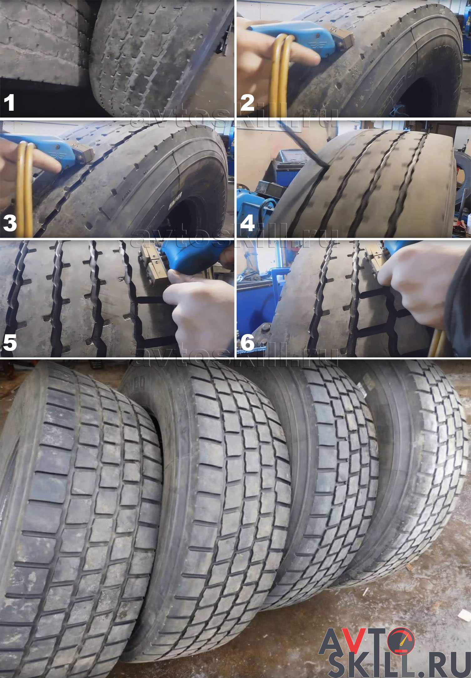 При бережной эксплуатации комплекта резины хватает примерно на 2 года. Правда, состояние наших дорог такое, что даже аккуратная езда не поможет сохранить протектор в целостности. Стоимость новых колёс высокая, но есть бюджетный вариант — нарезка нового рисунка. Делать это нужно уже в том случае, если высота протектора составляет менее 1.6 мм. Процесс достаточно простой, но также требует определённых навыков. Если вы ни разу такое не делали, то лучше обратиться в сервис. Многие не знают, что при изготовлении покрышек производители преднамеренно закладывают слой резины, который служит для последующей нарезки при износе. То есть, эта процедура вполне возможна и на прочности колеса никак не скажется. Но это действует только для шин грузовых автомобилей, поскольку их толщина позволяет углубить рисунок. Резина на легковой машине восстановлению не подлежит, поэтому владельцы нарезают её на свой страх и риск. Но раз уж зашёл об этом разговор, то необходимо описать сам процесс, однако делать это не рекомендуется.