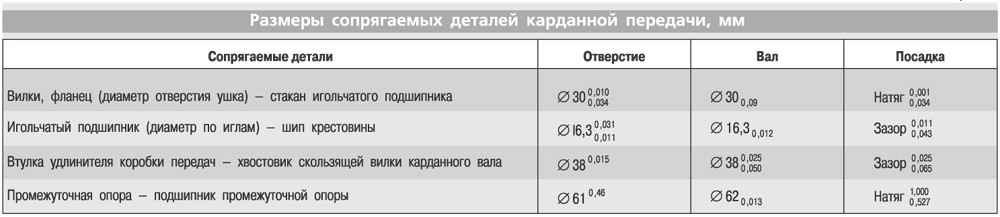 Таблица 5.4. Размеры сопрягаемых деталей карданной передачи, мм