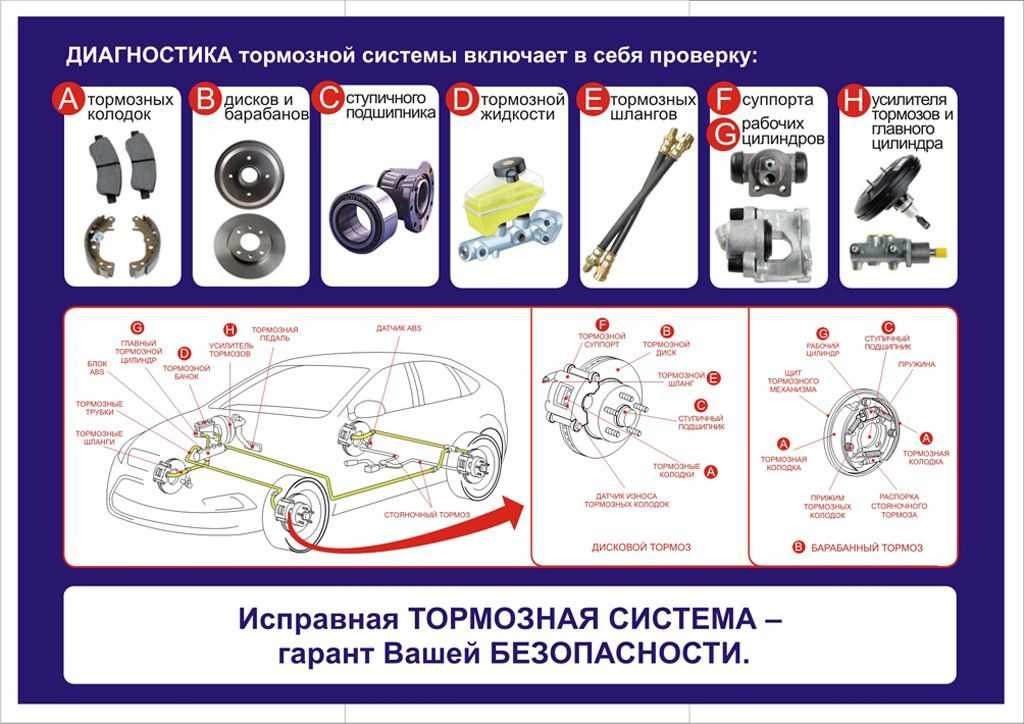 Диагностика тормозных систем автомобиля предусматривает выполнение ряда диагностических работ: