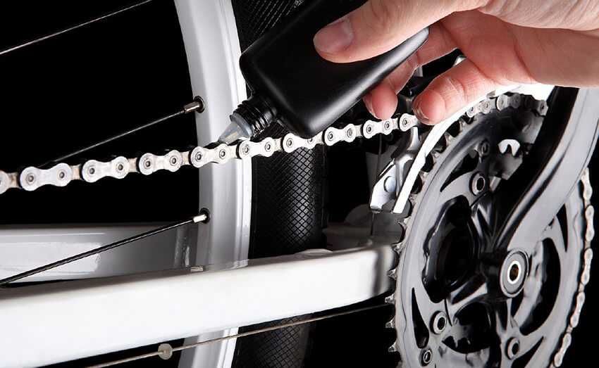 После очистки и сушки цепи наносим смазку на каждое звено, а конкретнее на каждый ролик тонким слоем. Если вы используете жидкую смазку, то для более точного нанесения можно воспользоваться шприцем или масленкой.