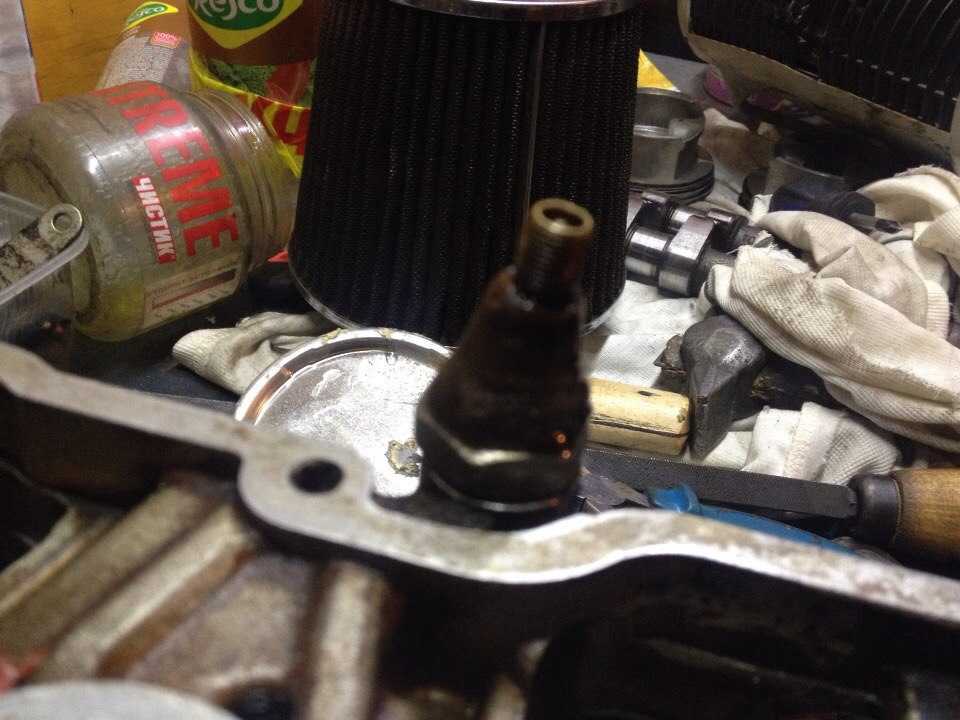 Вкручиваем его на место датчика давления. Далее набираем в шприц 2 раза по 20 кубиков масла и закачиваем через сосок в гбц. Вкручиваем сам клапан в сосок(без него пистолет для подкачки работать не будет), начинаем создавать импровизированное давление в гбц и смотреть, куда пойдет масло. Причиной отсутствия давления было вытекание его по шейкам валов и стекание сразу в поддон, отсюда стук гидрокомпенсаторов и включение сигнальной лампы на панели приборов. Итог работы — по шейкам валов масло уходить перестало. Решено ставить эту гбц на пробу, все будет описано позже.